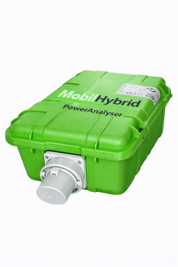 Der MobilHybrid PowerAnalyzer 63A ist ein anschlussfertiger, intelligenter Messkoffer zur präzisen Erfassung von Energie- und Leistungsbedarfen. Er misst Leistung, Energie, Strom und Spannung je Phase und überträgt die Daten per LTE ins MobilHybrid Datenportal.
